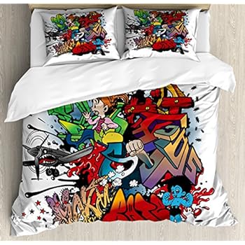 Amazon Com Hip Hop Bedding Set King Size Colorful Graffiti