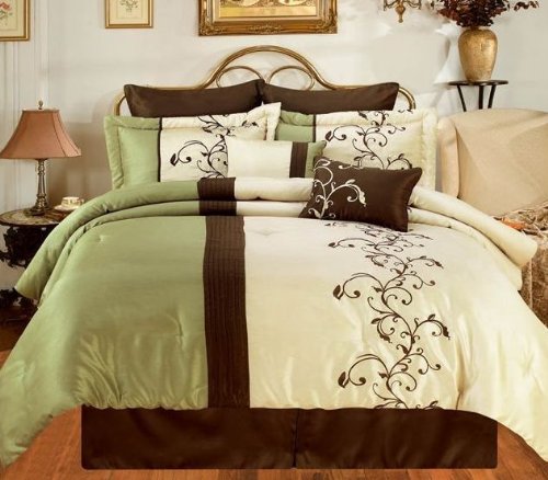 Get The Deal Green Brown Oversized 8 Piece Comforter Set Queen