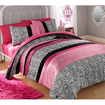 Neon pink comforter black teen bedrooms ideas bedroom tween twee white queen vogue drop.