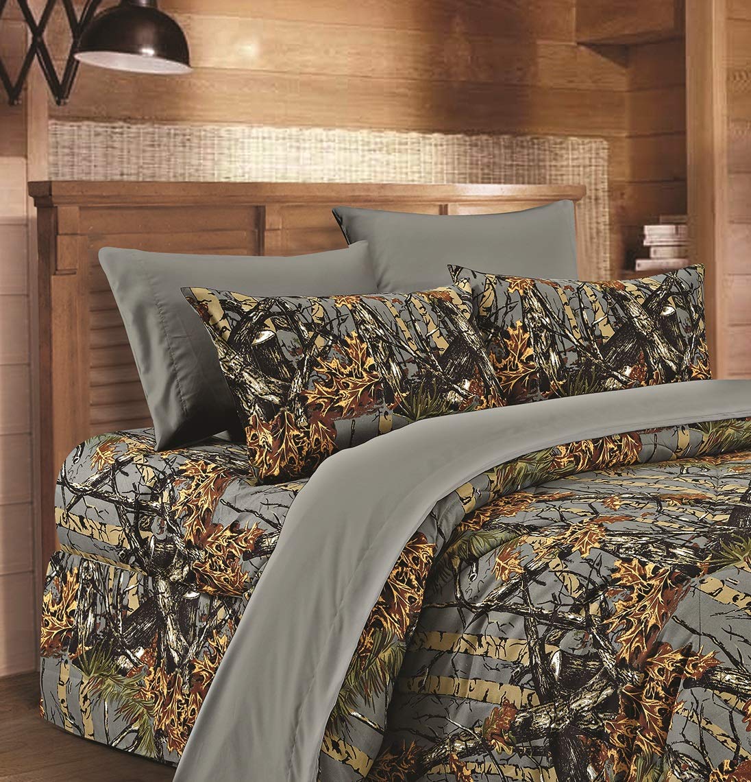 Hunter Camo Comforter Sheet Pillowcase Set Gray